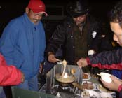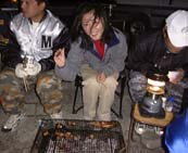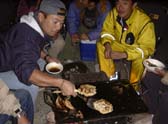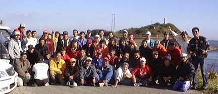 2001.11.10」=イカ様パーティの参加者やスタッフが多く、あとで合流しました。お聞きすると何と200人近くの釣り人が競ったそうでアオリイカの人気がうかがえます。淡路の由良に集まったのは総勢50人ほどのスズキに嫌われている人たちです。季節風の強く吹く中、三々五々集まったメンバーは夕方から料理の準備にかかります。