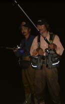 (写真は左、大阪の河内さん、、右は波の中でうだうだと話し続けながら釣りをする不真面目な内川・大坪さん)