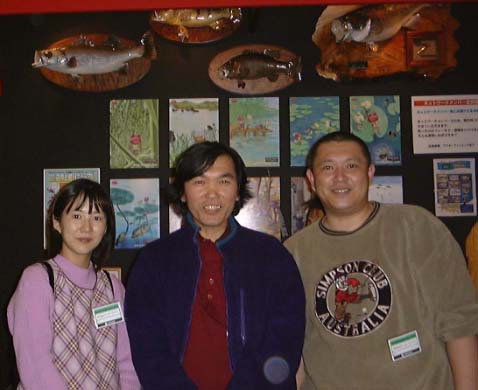 ブースの前でお会いできて楽しくお話をさせていただきました。後ろの頭上にある剥製が写真右のカビゴンことアフターフィッシングギア飛魚丸オーナー谷 典門さんの作品です。こんな大男(失礼)がこんな繊細な美しい仕事をするのかと驚きました。左の美女が店長のりっぺさんこと谷 ゆかりさんです。「アカメの国」からリンクしていますので興味があるかたは一度ホームページを覗いてみてください。久しぶりに会う友人達のなつかしいお顔もみれて楽しいひとときを過ごしました。しかし、人混みで疲れました。めったに人に出会うこともない田舎暮らしのわたしには大変でした。体力をつけて来年も行くぞ。