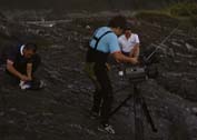 写真= 上左からディレクターの高野 徹也さん、大坪 保成さん、カメラマン=朴 道成(パク ドウソン)さん、左下内川 昭二さん、長野博光、村越正海さん、大坪 信成さん(大坪保成さんの長男)すぐ上の写真でマイクを構えているのはエディタ古田健久さんです。
