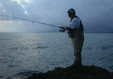安芸市のいつもの磯で内川さんと待ち合わせ村越さんたちを案内するとやはり、「こんなポイント(磯)もあるのですねえ、想像もしないような光景です」と言われる。夕方、5時頃なのでまだ太陽も出ている。準備を済ませて釣りを始めた。