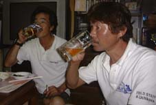 大坪さん宅に移動して村越さんと土佐レッドアイの対話を撮影、いつものようにビールが運ばれ仕事で飲むことのできないスタッフをほっといてグイグイぐびぐびと飲み始める。