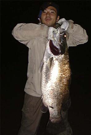 安芸市の某河川河口域で東京からバスで、飛行機で通い詰めた執念が実りました。「求めよ、行動せよ。さらば与えられん。」よかったねけーきさん。けーきさんの左側の男は大阪ボンゴさん、今回はけーきさんをアシストご苦労様でした。