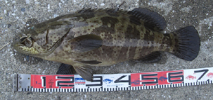 2008年8月14日午後5時50分、岡田 勝さんが何とアカメ狙いでチャイロマルハタを釣りました。8月14日の午後5時50分です。高知大学の町田先生が同定してくださいました。 チャイロマルハタは南の海の住人だそうですが、時々浦戸湾でも捕獲されるようになっているといいます。私も鹿児島県の種子島でこの魚を釣ったことがあります。これほど大きくはなかったのですが、かかってはじめの暴れ方は尋常ではありませんでした。これほど大きいとなんぼか引いたことでしょう。 ●全長:全長67センチ。 ●体長:体長58センチ。 ●体重:約6キロ。 画像は上杉一臣さん提供です。 |