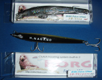 素晴らしい。 私は以前スズキやヒラスズキを釣っていた時。バラシの多さに悩まされたものです。夜も眠れぬ日もありました。大昔、安芸川河口域にスズキ・ヒラスズキがなんぼでもいた時のことですが、午前中数時間で20数回バラしてキープできたのはヒラスズキ1尾という時さえありました。 いろいろと考えたのですが、バラシの一番の原因はルアー本体と魚体がテコのように働くのではないかと思いました。つまり、フックにかかって暴れる内にフックが作用点、ルアーが支点、魚体が力点になるのではと考えたのです。そこでフックをルアーから取り外して、10センチほどのリーダーをつけそれでルアーと連結し、普段は細いラインでフックを普通のルアーのように括り付けて置けばヒットした時、細いラインが切れてフックはルアー本体からはずれてフリーになると考えてやってみたのです。 使ってみました。発想はよいと思ったのですが、結果は失敗でした。まともに泳がないのです。 オプセル社のルアーは魚がヒットするまではごく普通のルアーなのです。柴山さんからお土産ですといただいたルアーの背には私のネーム入りでした。恐縮したことです。いよいよその実物を手にして感心しました。これはバラシが少ないと思ったのです。 |