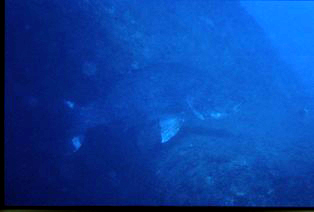 夕方、首尾を聞くと、「潜水をはじめて直ぐに会えました。何と3回もアカメに遭遇することが出来ました」。高知のアカメの多さに改めて驚いたそうです。最初の出会いは50〜60センチのサイズの5匹ほどの群れ。カメラを構えるうちにバッといなくなったそうです。次は1メートルほどの老成魚のような大型。こちらは1回シャッターを切ってから姿を消したそうで、どれも浅場での出会いでした。次も大きかったそうで、2回とも大型は単独だったそうです。最後のアカメは物陰から身体半分ほど見えていて全身が出てから撮影しようと待ちかまえていると、すうっと全身が出たと思ったら瞬間ダッシュして去ったそうです。陸から見ると澄んでいるように見えたのですが、少しの濁りがあり撮影の条件はあまり良くなかったそうですがシャッターは3回切れたそうです。「フィルムですので画像の善し悪しはわかりません」。