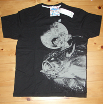 画像右側はなんとユニクロで販売していたTシャツだそうで、友人が買ってきてプレゼントしてくれました。「長野さん、こんながは知らんろう」とくださったもので開けてみるなり「おお!」と声がでました。釣りキチ三平の1シーンがプリントされています。四万十川の“潜水艦”です。