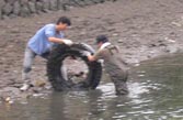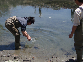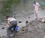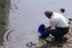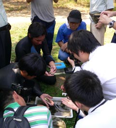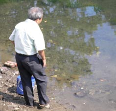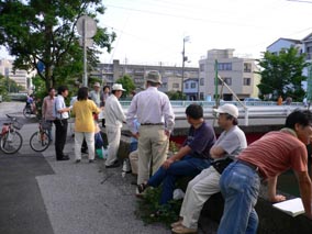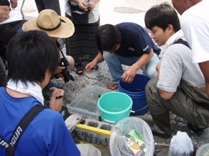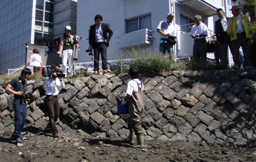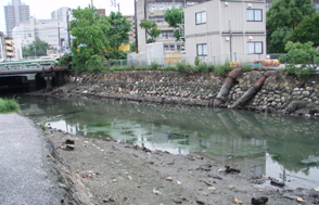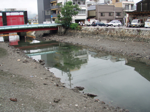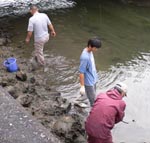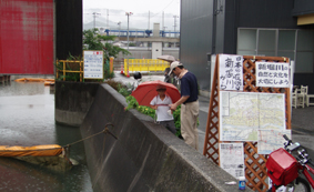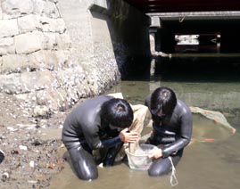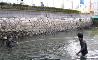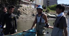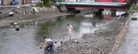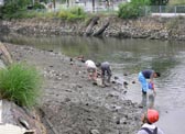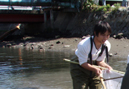 【第四回新堀川生物調査】07.10.102007年10月7日の日曜日、三年連続の第四回新堀川生物調査が行われました。浦戸湾を守る会主催で高知大学の大学院生阪本匡祥さん(連続参加)のご協力をいただき、また今回は桂浜水族館から堀内さんも初参加してネットを入れました。