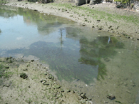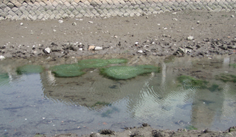 いくら何でもこんな無茶な理屈が一般社会で通用するはずはない。撤去部と公園前の距離は30メートルもない。たったこれだけの距離の、しかもともにオープンな環境でクロロフィル量が異なったのは日射量が異なったからという出鱈目な説明を誰が納得するというのか。陳情の際、担当部局から「効果があったはず」と再三にわたる発言があった。効果はあったはずだが、微細藻類でそれを証明するのはほぼ不可能ということが分かっていない。すなわち、評価項目の設定ミスであり、光環境(光条件)が異なる3地点(光が以前から当たっている、以前は光がなかったが現在は当たっている、以前から光がない)で各1試料を採取したつもりなのだが、じつは表層堆積物が水流でならされた同一条件下で3試料を採取しただけというじつにハッピーな話なのである。