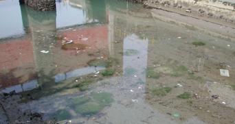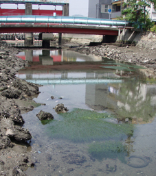 道路の下になった新堀川は魚介類などの赤ちゃんの保育場であるコアマモが繁り、たくさんの生き物がすんでいましたが、今やそこは死の川です。