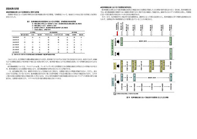 調査項目は多岐にわたるが、環境が良くなったと根拠にした底生性微細藻類に関する図9と図10、まとめの表1の底生性微細藻類をご覧いただきたい。この項目以外のほとんどについては明瞭な傾向が認められなかったと自ら記述しているので、言及しても意味がない。もちろん、調査・分析をしたが明瞭な傾向が認められなかったとの結果は、もともと統計学的に耐えられる試料数ではないのだから当然であり、正直な記述であると思う。試料数を増やせば意味のあるデータとして残る可能性はあるのだが、お役所の言う金がない、が殺し文句である。