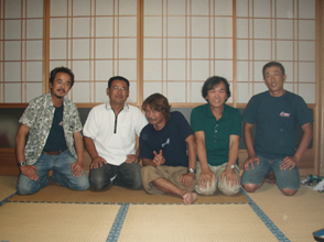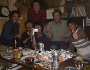 2008年8月28日、「ルアーマガジン・ソルト」の取材で編集の中川さん、カメラマンさんとともにおいでた村越正海さん。前回はテレビの取材でしたが、惜しくも磯のアカメをバラしてしまって悔しがっておりました。今回はリベンジとなります。磯のアカメというシチュエーションがたいそう気に入ったようで今回、かなりこだわって集中的に狙っておられるようでした。 おいでた当日、何はさておき歓迎の「一杯やろうぜよ」となり、内川さんのお宅で宴会となりました。内川さんが、このために沖にでて釣ってきたというマグロの刺身、奥さんの手料理、大坪さんは釣りたての鮎の塩焼き、鮎の友づりでよくかかるという「みみなし」(ボウズハゼ)の唐揚げ、これは絶品でした。美味い!!。私はイノシシの旨煮。村越さんたちも山海の珍味に喜んでくれました。 翌日から磯を攻めまくった村越さんでしたが、ヒットはなかったようです。しかし、さすが村越さん、伊尾木川河口のサーフでアカメを狙って釣りました。70センチほどのアカメでした。9月発売の「ルアーマガジン・ソルト」に載るそうです。(画像左から、大坪、村越、内川、長野、小田各氏) |