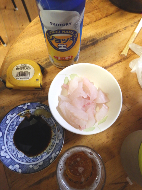 帰ってすぐに料理、家族に刺身を振る舞うと「美味しい」の連発でした。ねかせると美味しいとも言いますが、絞めてから1時間以内の刺身はまた味が違います。
