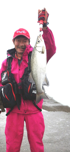 現場に着くと「1匹キープしたが、6匹はリリースした。1尾だけマルスズキだった」と言います。これまで彼がスズキをリリースしたと聞いたことがありませんでした。どうしたことじゃろう?といぶかりましたが、よほどこの場所を大事にしたいのだろうと勝手に解釈。本当は冷蔵庫が沖で釣った獲物で満杯だったのかもしれません。