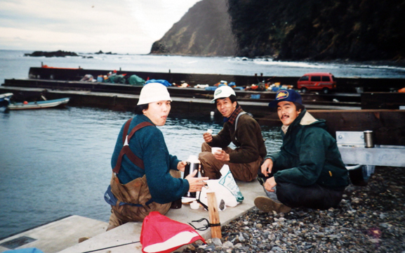 大坪「先日、○○でヒラを釣った」 内川「あそこはオレが温存しちゅうがやに」 長野「知らんがじゃろう。いっつも条件のえい日は誰かやりゆうぞ」。