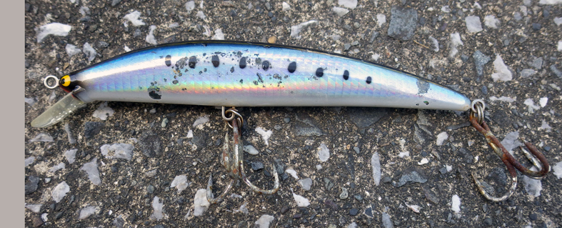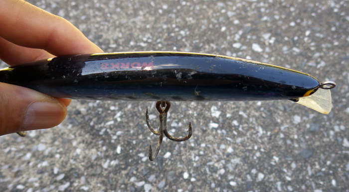 TKLM8と9はよく活躍してくれて、もうこの二つのルアーだけで30尾以上のヒラスズキを釣ったのですがさすがに塗装は剥げ落ち、ぼろぼろになりました。 ![]()