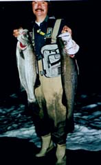 ガイドが参加しているルアーフィッシングのクラブです。定員は三名でずっとやってきました。えらい個性が強い頑固者の集まりで、これ以上人数が増えると収まりがつかないという危惧から、最初から定員三名です。早いものでこの三人がフィールドで出会ってもう二十数年(2000年当時)がたちます。メンバーの共通点はお魚大好き人間ということで、釣るのはもちろん、見る、飼う、食べると魚を骨まで愛していることです。海に限らず淡水のルアー・フライ・エサ釣りまでやります。どんな釣りでもやりたいと思っていますが、ガイドはブラックバスの釣りだけはやりません。