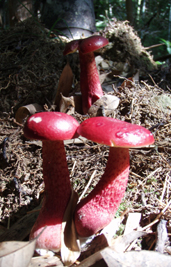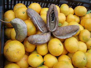 「アカメの国」は秋真っ盛り。 写真左のキノコは10月中旬に栗拾いに山に入った時撮影したものです。山道のそばに可愛いキノコがたくさん生えていました。当地では野生のキノコはあまり利用していません。私は何でも食べてやろうという「いやしんぼ」ですがキノコに関しては保守的です。 写真右は10月29日に撮影しました。アケビ(当地でいうミズワケビ)と私がつくっている早稲ミカンで品種は興津。アケビは濃厚な甘みがたっぷりでした。完熟すると写真のようにパカッと口を開け(こういう状態を当地では笑うと表現します)て中身が露出します。こうなると収穫は小鳥と競争になります。小鳥はアケビが大好きで種ごと食べます。アケビにとっては糞と共に新天地に種まきをしてくれるのでありがたいことでしょう。これがアケビの生存戦略かもしれません。アケビの皮も種もうんと苦いのですのでこれは戦術の一つでしょうね。